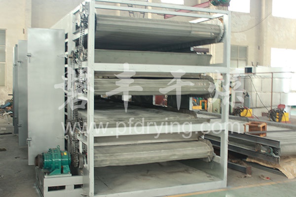 產品概述:DW系列多層帶式干燥機是成批生產用的連續式干燥設備,用于透氣性較好的片狀、條狀、顆粒狀物料的干燥,對于脫水蔬菜、催化劑、中藥飲片等類含水率高、而溫度不允許高的物料尤為合適;該系列干燥機具有干燥速度快、蒸發強度高、產品質量好的優點,對脫水濾餅狀的膏狀物料,需經造粒或制成條狀后方可干燥。